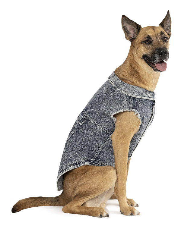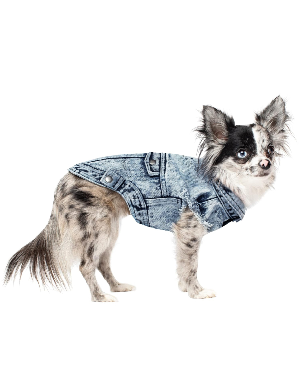Add a touch of urban flair to your dog’s wardrobe with the Canada Pooch Downtown Denim Vest. Made from soft, acid-washed denim, this vest combines contemporary style with everyday comfort. The adjustable front closure, featuring metal buttons, allows for a secure and tailored fit, while the reinforced double-stitched seams ensure durability for all your pup’s adventures. With classic faux-flap pockets as a stylish accent, this vest is perfect for casual strolls or making a statement during outings. A must-have piece for fashionable dogs who love to turn heads!